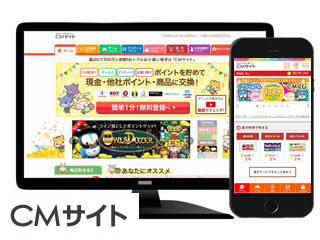 登録者数310万人以上のポイントサイト「CMサイト」。CMを見るだけでポイントが貯まるサービスとして1997年にスタート。アニメーションでコンバージョン動画を機動的に制作する手法を確立しました。パソコン向けには2,400社以上のコンバージョン動画を作った実績があります。